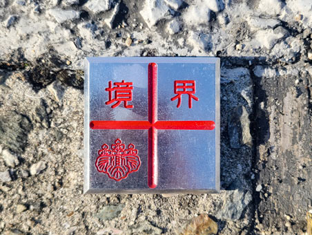 境界標に矢印(↑、↖)の表示があるものは、矢印の先端部分が境界と見ます。